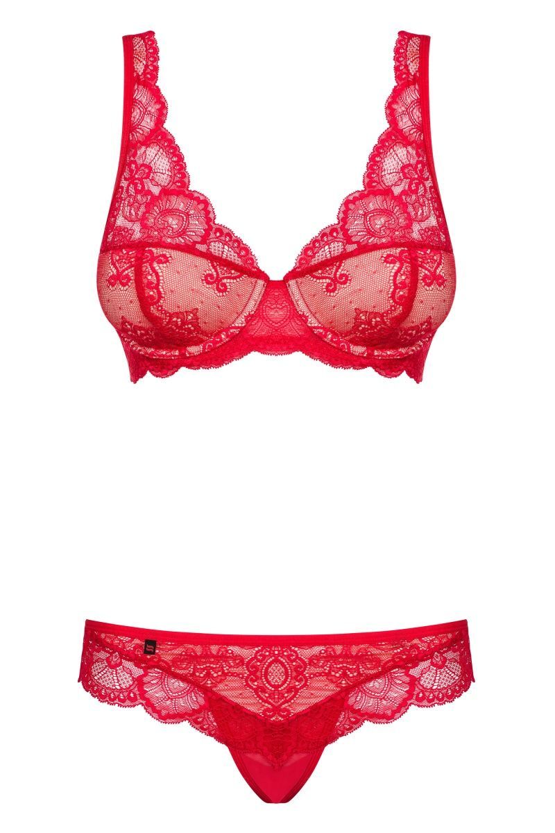 Эффектный кружевной комплект с чашечками на косточке. В комплекте: бюстгальтер, трусики.