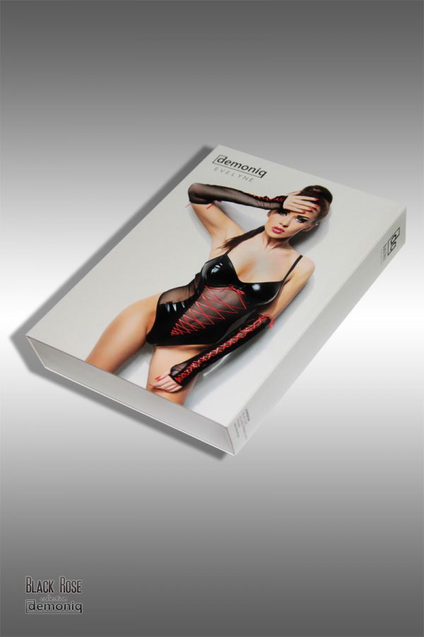 Современный, властный и сексуальный комплект Evelyne сказочно подчеркнет Ваши формы, не оставив сомнений, кто главный... Боди изготовлено из эластичной, черной сетки и ткани с мокрым эффектом, которые идеально прилегают к телу, визуально стройнят силуэт и делают его более заманчивым. Огненно-красная лента добавит остроты и алчности. Регулируемые бретели прекрасно подчеркнут грудь, а задняя часть боди выделит линию бедер и ягодицы. Длинные перчатки из нежной сетки украшены огненно-красной лентой по всей длине. Они будут важным дополнением к Вашему образу. Комплект не только прекрасно выглядит, качественно и удобно сделан, но и выполнен в единой стилистике. В комплекте: боди, перчатки.