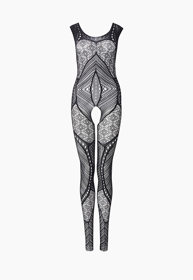Чёрный комбинезон со сложным геометрическим узором. С интимным доступом. Трусики не входят в комплект!