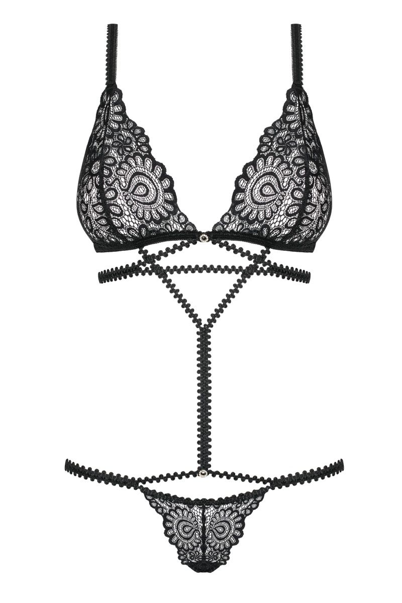 Эффектное боди Mixty выполнено из эластичного кружева и мягких лент. Лиф мягкий без косточек, низ боди выполнен в виде стрингов. Бретели регулируются.