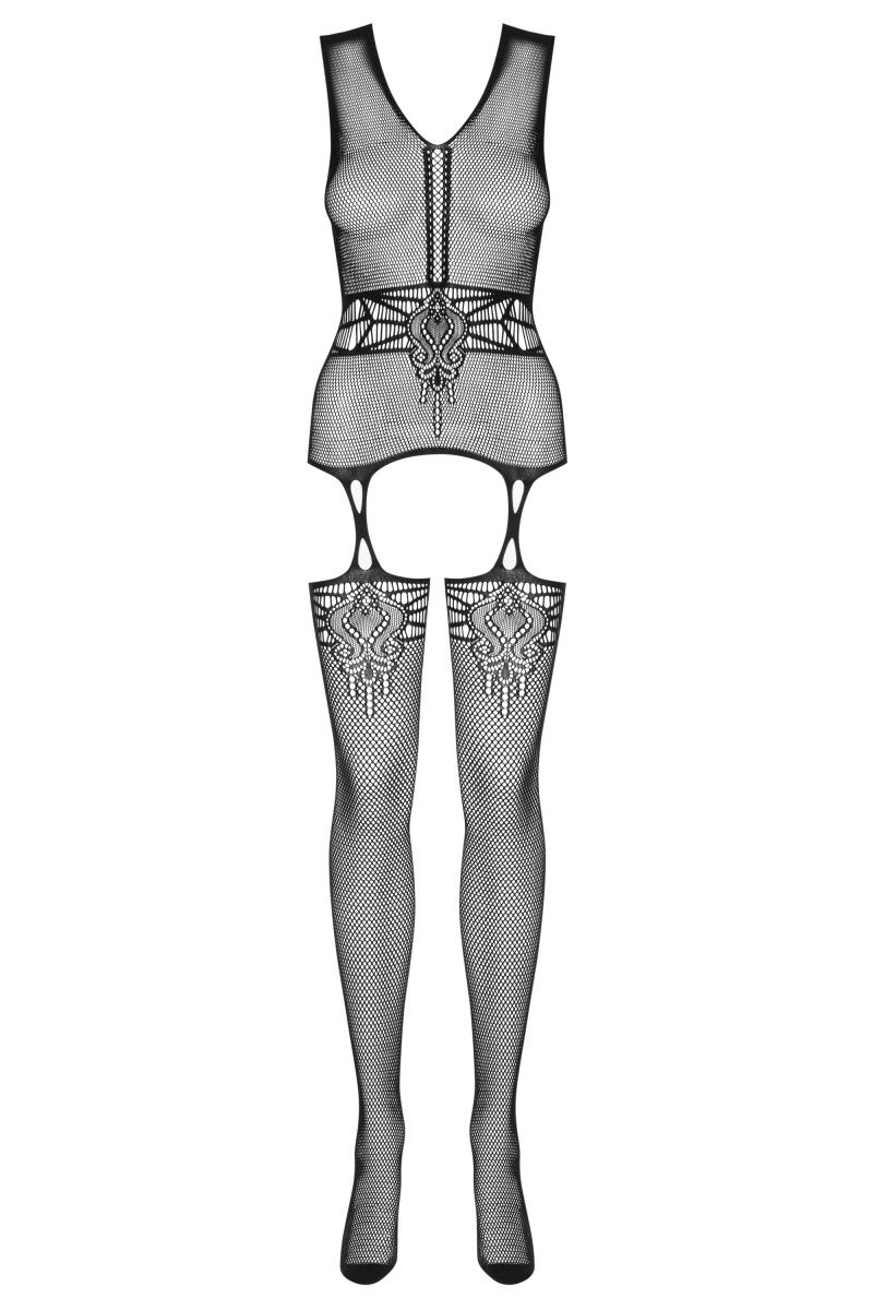 Комбинезон с имитацией чулок, выполнен из эластичного и приятного на ощупь материала с оригинальным рисунком.
