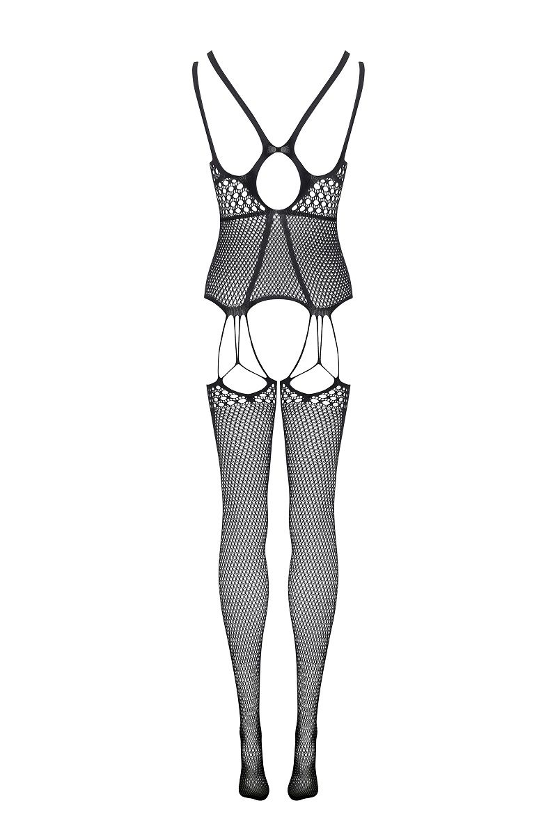 Сексапильный комбинезон с круглыми ячейками на лифе и чулках.