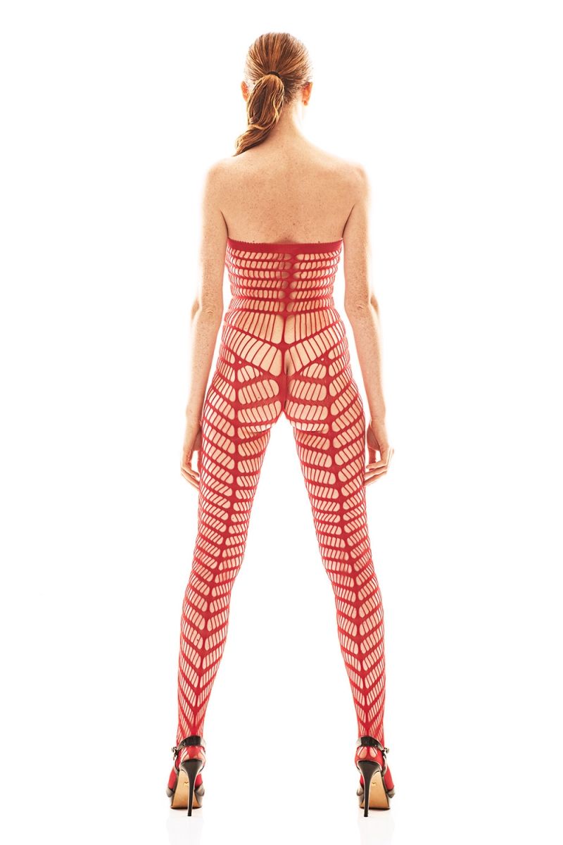 Соблазнительный комбинезон на тонких съемных бретелях выполнен из эластичного и приятного на ощупь материала.
