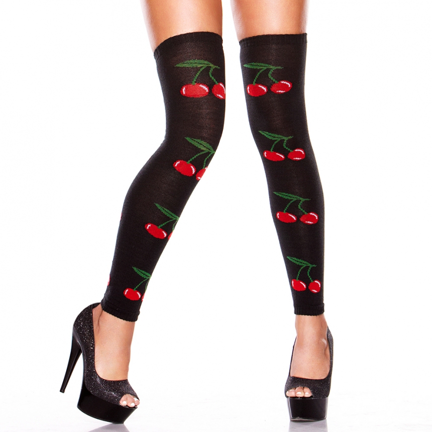 Париджины на тонкой резинке в черном цвете, связаны из акрила с добавлением спандекса. Яркий рисунок с красными вишенками.