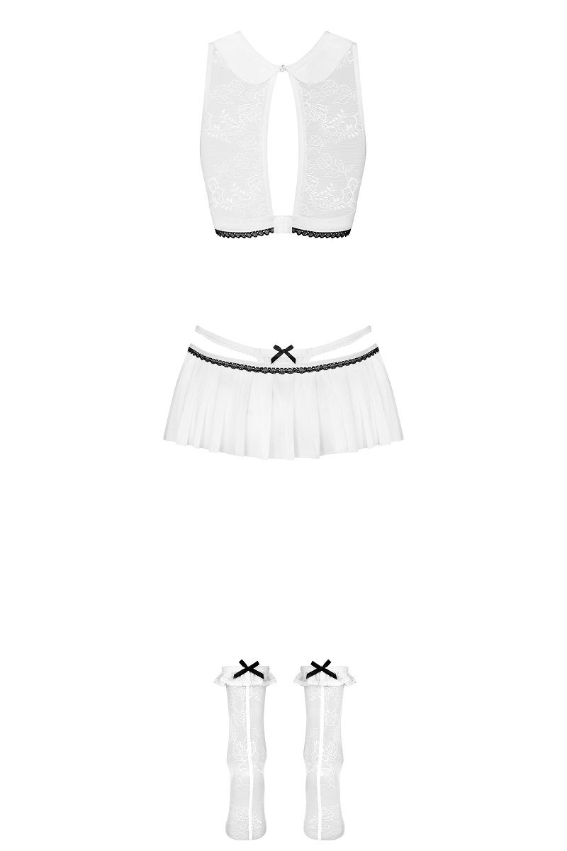 Игровой костюм безотказной студентки. Состоит из топа, юбка, трусиков и гольфов. В комплекте: топ, юбка, трусики-стринги, гольфы.