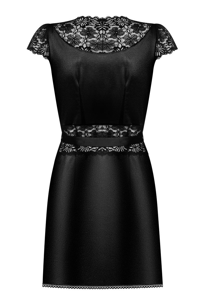 Элегантный пеньюар из стрейч-атласного материала, украшен кружевом, трусики в комплекте. В комплекте: пеньюар, трусики-стринги.