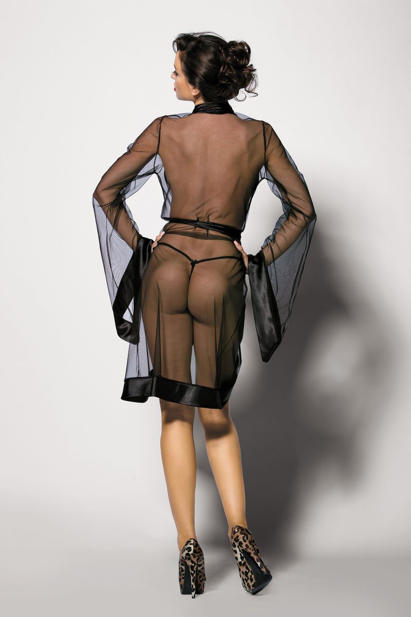 Роскошный пеньюар поможет Вам создать страстный образ королевы ночи. Пеньюар выполнен из тончайшего невесомого шифона. Ворот, полочки, подол и рукава окантованы широкой лентой из мерцающего черного атласа. Широкий атласный пояс подчеркивает талию. Трусики-стринги в комплекте. В комплекте: пеньюар, трусики-стринги.