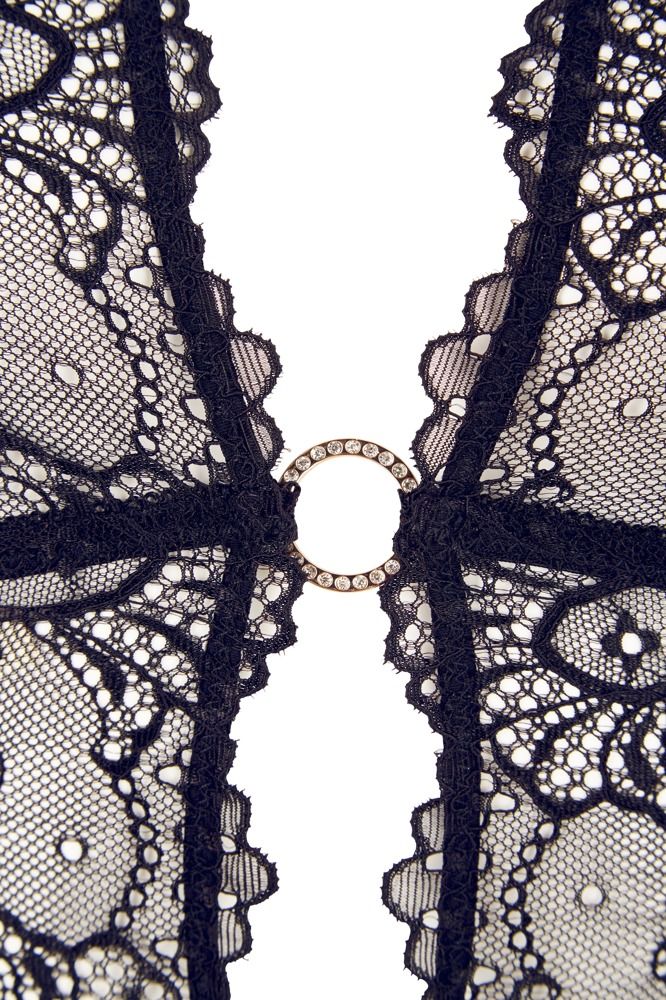 Полупрозрачная грация с цветочным кружевом. Грация держится на 4 колечках, соблазнительно оставляя место для вашей фантазии, а четыре подтяжки на кружевном подоле регулируются по длине. Трусики-стринги с интимным доступом. В комплекте: грация, трусики-стринги.