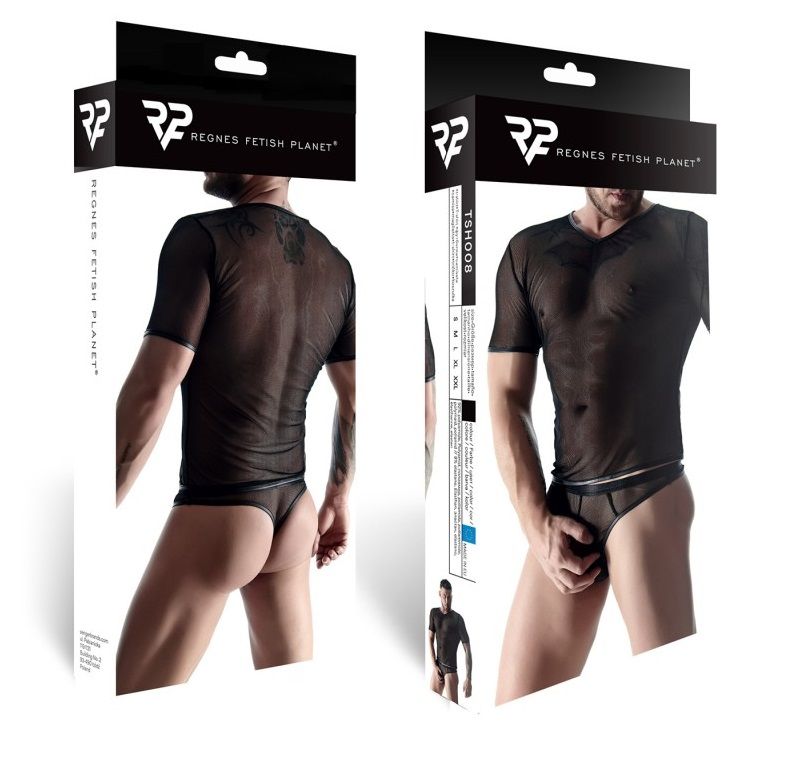 Мужская футболка выполнена из эластичной сетки,края изделия отделаны материалом в стиле wetlook. Садится четко по фигуре. Высокое качество материалов и пошива - комфорт на высшем уровне.