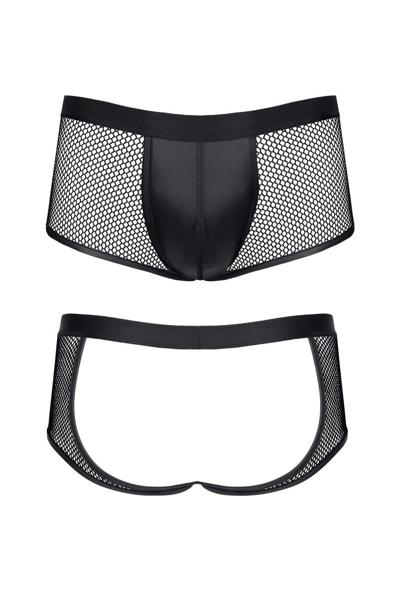 Трусы мужские с открытыми ягодицами. Выполнены из приятной экокожи и эластичной сетки. Высокое качество материалов и пошива - комфорт на высшем уровне.