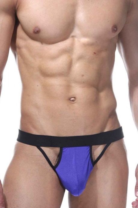 Трусы-стринги для мужчин на широкой резинке на поясе. Спереди трусы из тонкой гладкой ткани.