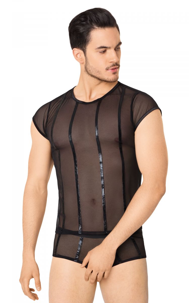 Экстравагантный комплект для смелых мужчин. Футболка и шорты выполнены из крупной эластичной сетки. В комплекте: футболка, шорты.
