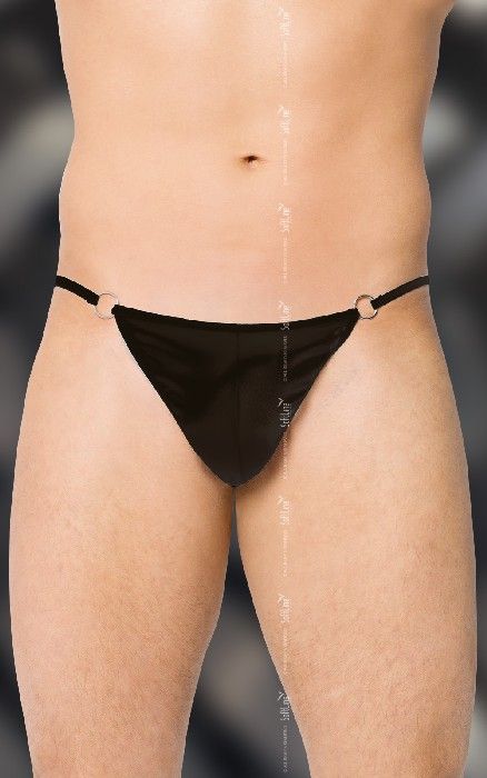 Тоненькие бретели на кольцах, нежная ткань с сиянием… Да, эти трусики-стринг точно заставят любимую сначала посмотреть на чресла, и лишь потом в глаза. Самое приятное, что материал не скрывает контуров предмета вашей гордости. По изменяющемуся рельефу женщина поймёт – ваша плоть уже тверда и готова к секс-марафону! Эта модель из удивительно нежной и приятной для тела атласной материи одинаково хорошо сидит как на худощавых и поджарых сексуальных пареньках, так и на более брутальных представителях сильного пола. Бедра в стрингах выглядят упругими, ягодицы, крепкими, а мужское достоинство - маняще-соблазнительным.