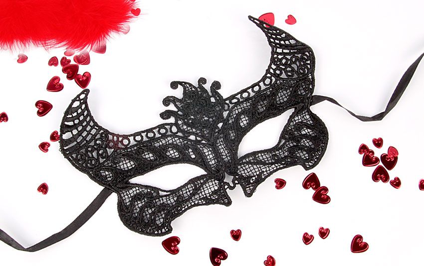 Создайте таинственный образ, где вы будете играть роль неприступной, но очень яркой обольстительницы. Ажурная маска на глаза не скроет ваш взгляд, но придаст образу особого шарма.
