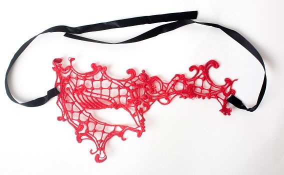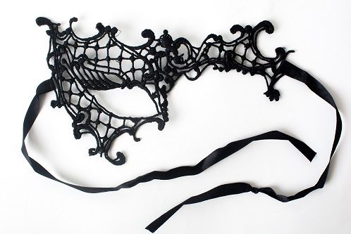 Кружевная маска в венецианском стиле с многочисленными ажурными узорами. Завязывается на черные атласные ленты. Упаковка - бумажный конверт. Размеры - 22 х 11 см.