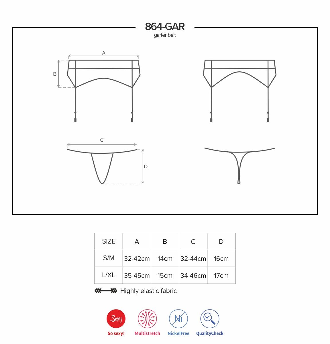Пояс для чулок с кружевным декором и регулируемыми подвязками. В комплекте: пояс для чулок и трусики-стринги.