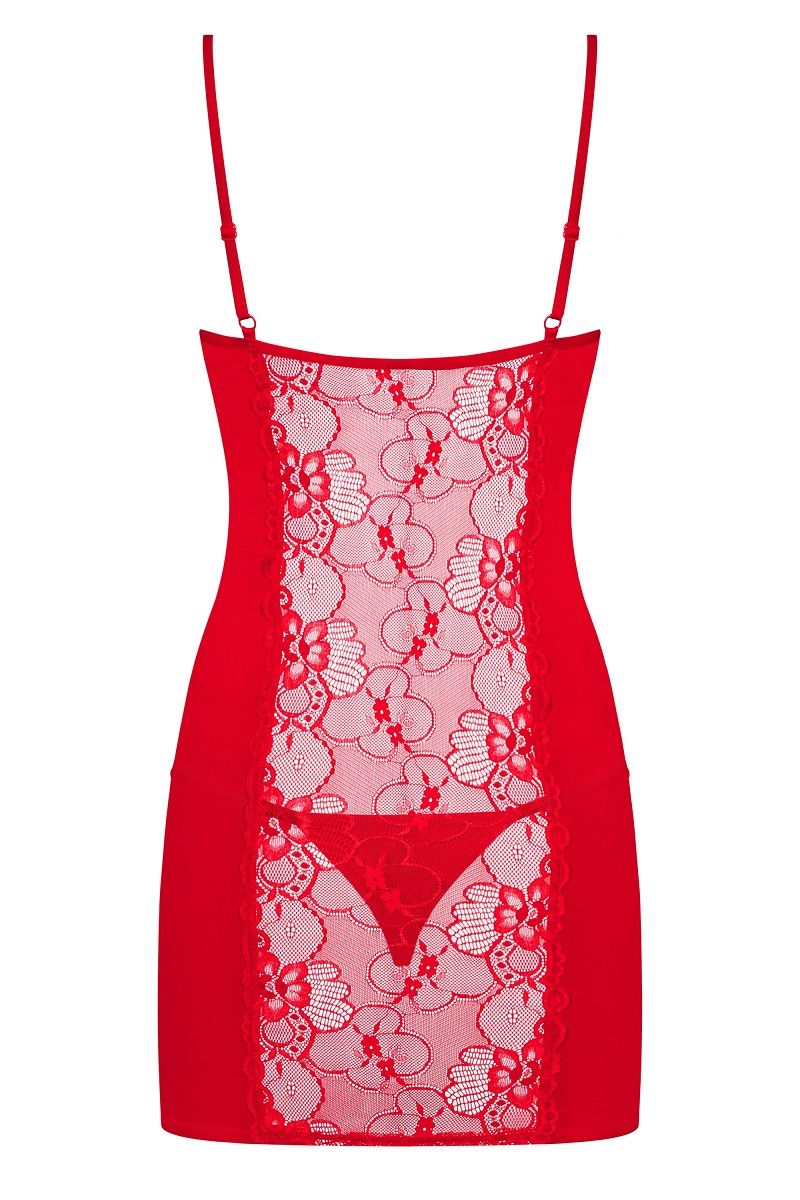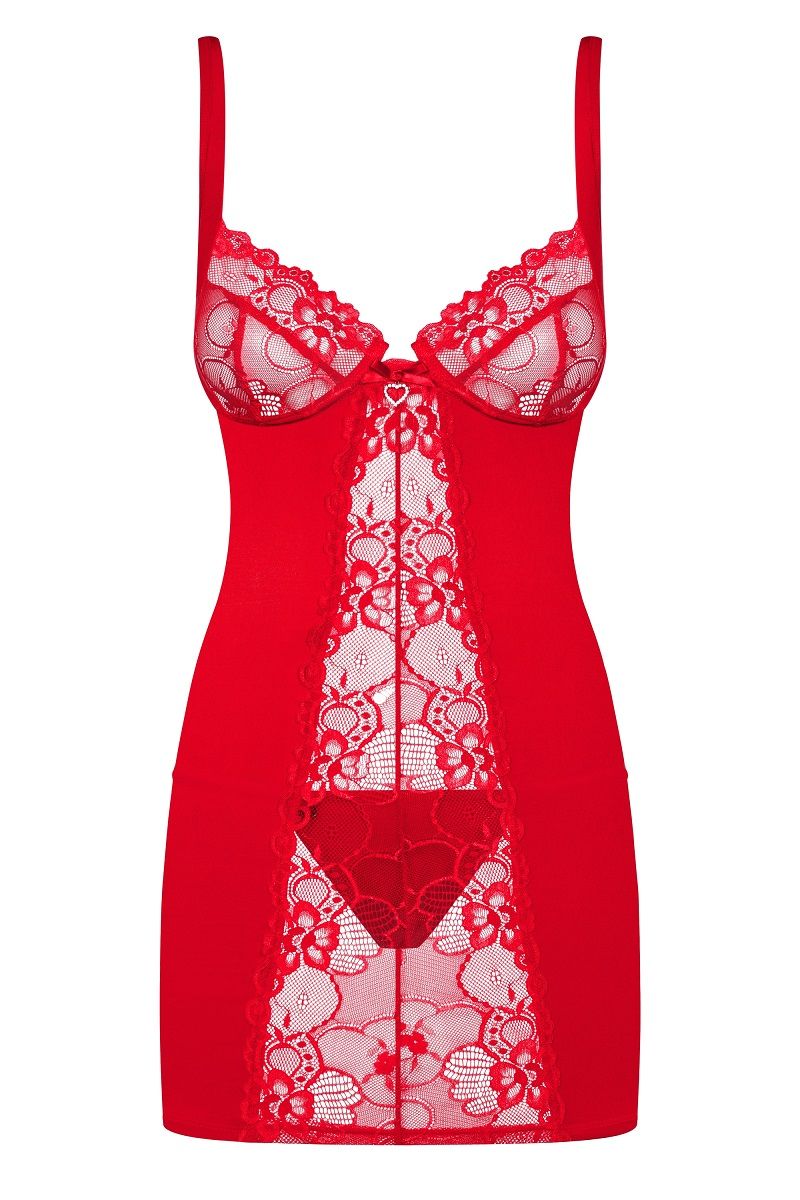 Алая сорочка Heartina с кружевами. Кружевной лиф на косточках, украшен маленькой подвеской в виде сердечка. В комплекте: сорочка, трусики-стринги.