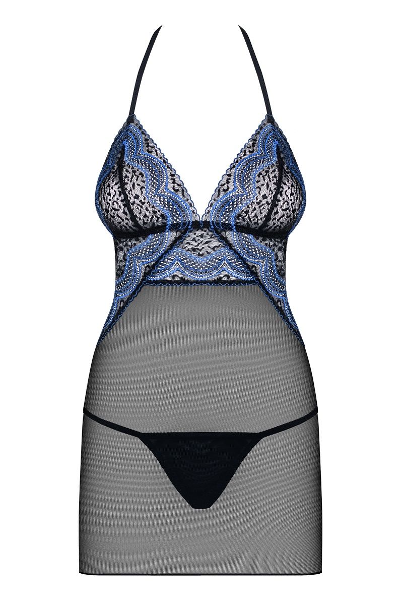 Облегающая сорочка с контрастным узором в виде волн. В комплекте: сорочка, трусики-стринги.