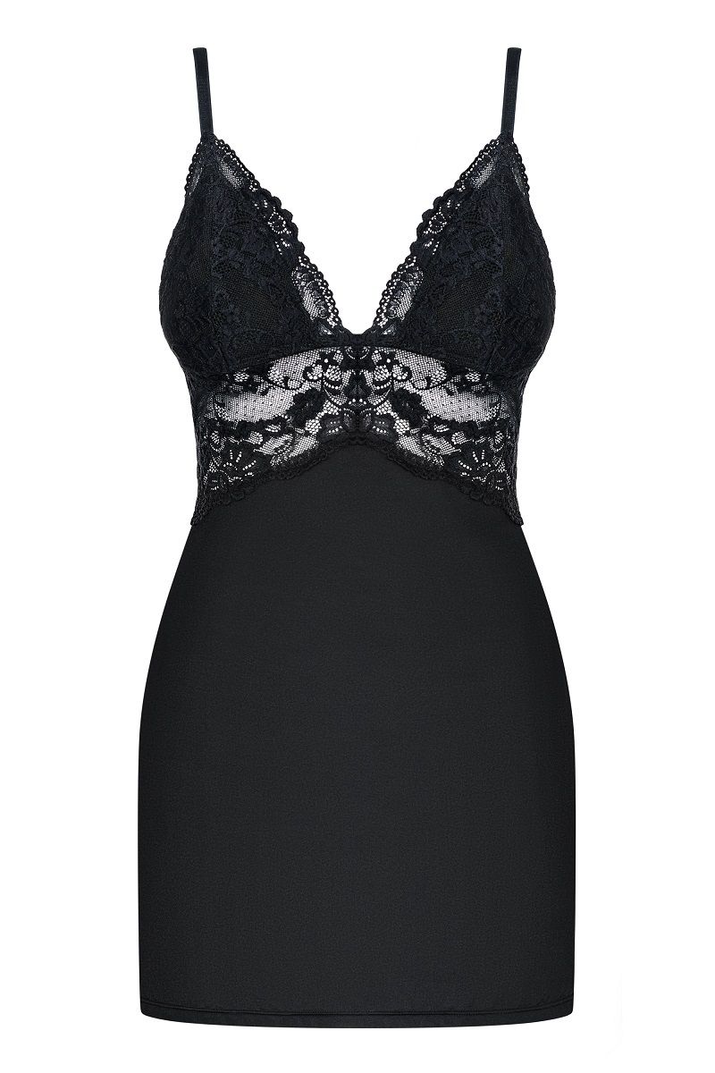 Элегантная сорочка на тонких бретелях, украшена кружевом с цветочным рисунком. В комплект входят трусики. В комплекте: сорочка, трусики-стринги.