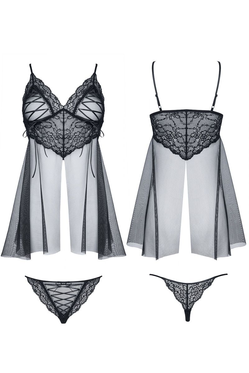 Полупрозрачная сорочка с кружевными вставками Clotilde. В комплекте: сорочка, трусики-стринги.