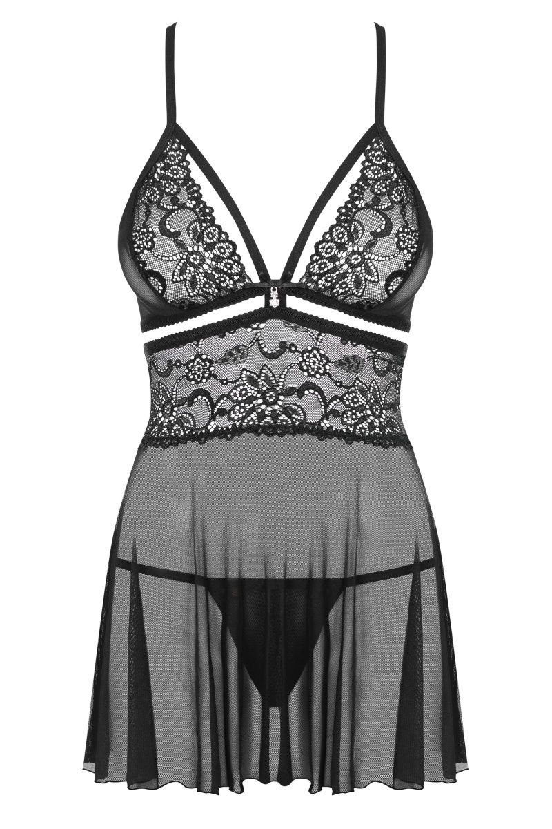 Яркий бэби-долл с изысканным цветочным кружевом. В комплекте: сорочка, трусики-стринги.