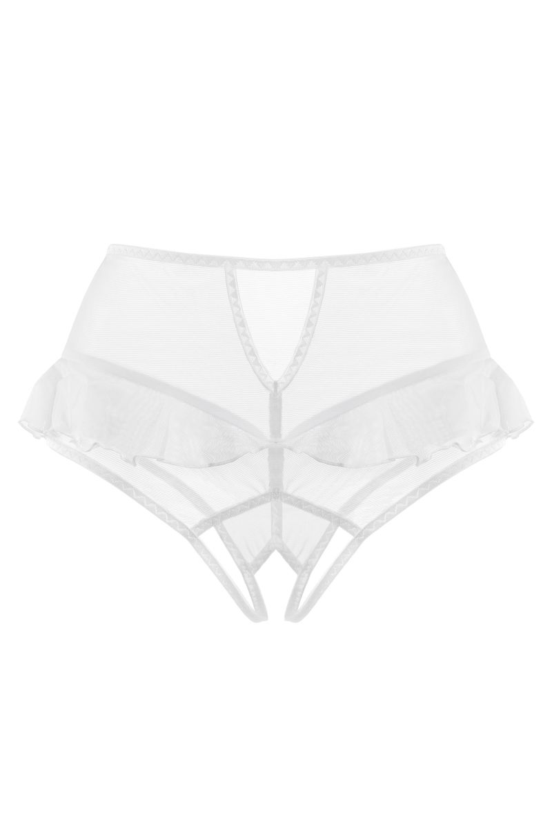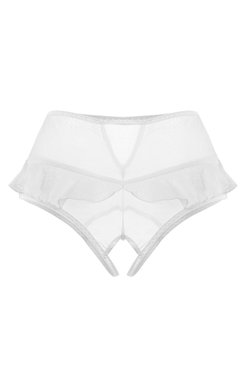 Эротические трусики с высокой посадкой Lana от Erolanta — ваши сторонники в искусстве соблазнения. Эластичная сетка изящно подчеркивает линию бедер, а игривые воланы обезоруживают своей невинностью. Высокая посадка эффектно выделяет талию и деликатно скрывает мелкие недостатки фигуры. Пикантный вырез сзади подстегивает мужскую фантазию, а доступ к интимной зоне позволяет наслаждаться игрой, не снимая трусики.
