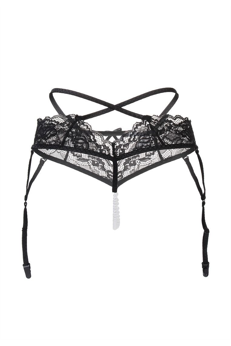 Эластичные трусики-пояс с жемчужной нитью Erolanta Wendy слишком роскошные, чтобы держать их в тайне. Тонкое кружево покрывает бедра нежнейшими лепестками ажурных цветов. Жемчужная нить нежно стимулирует и украшает. Перекрещивающиеся стрепы добавляют образу нотку дерзости, а регулируемые съемные пажи, повторяющие боковую линии бедра, эффектно дополняют образ с чулочками. Провокационный дизайн открывает доступ к интимной зоне и позволяет наслаждаться игрой, не снимая трусики.