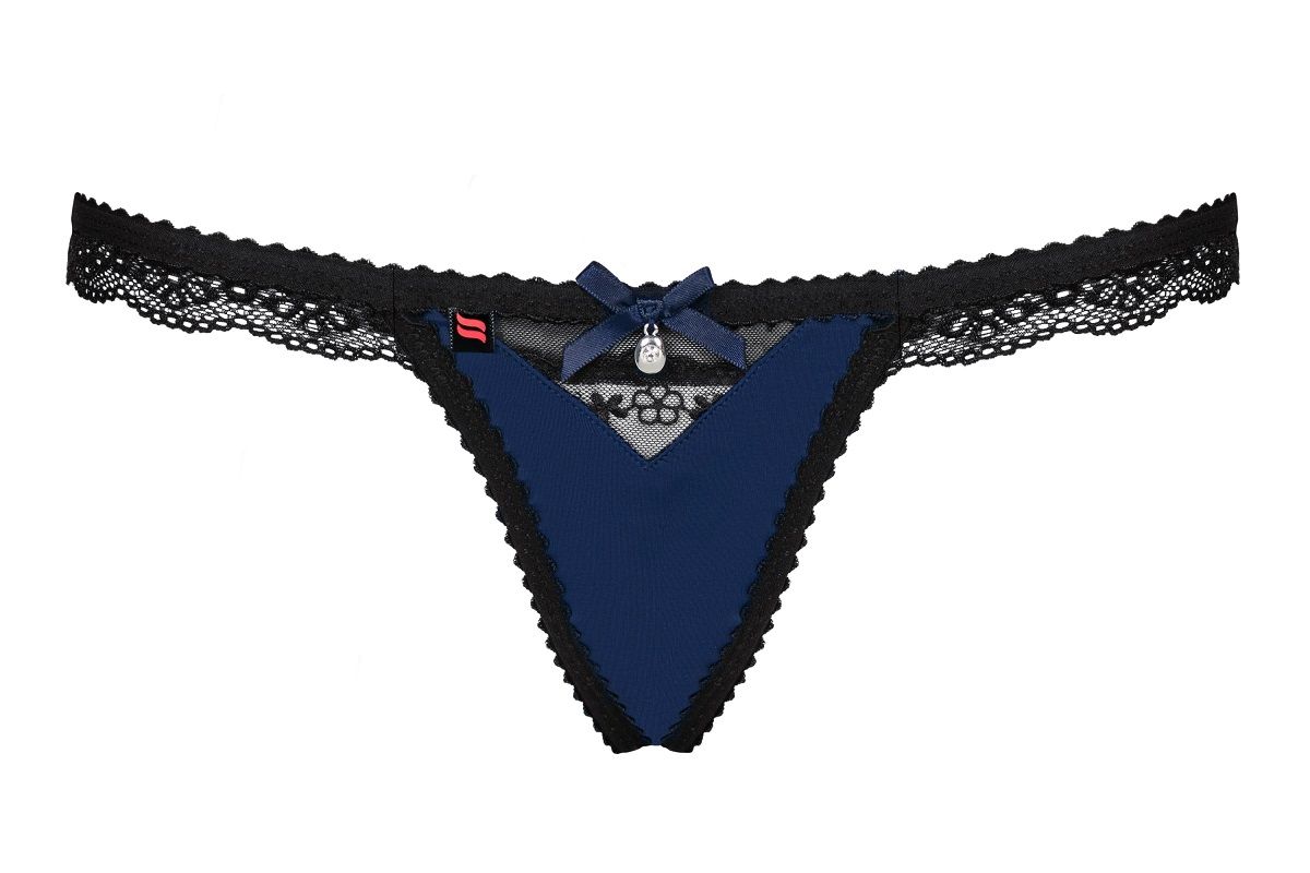Милые трусики-стринги с кружевной оторочкой и подвеской.