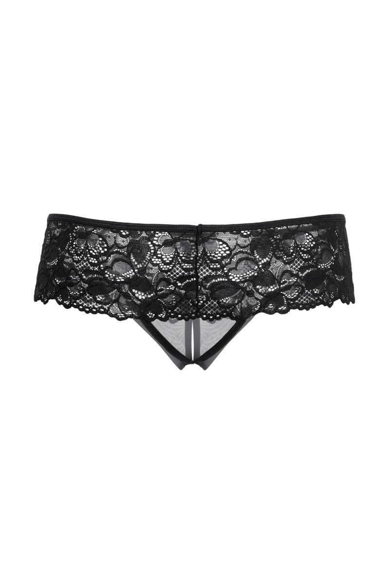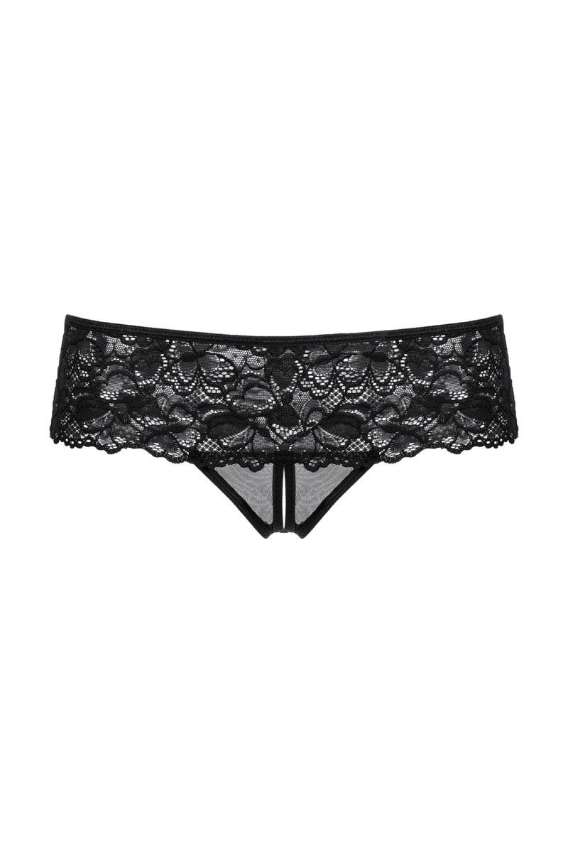 Удивить мужчину – действительно просто! Взять хотя бы эти трусики-шортики из нежного кружева. Ажурные цветы обнимут бёдра, подчеркнув пышность попки. Вырез между ножек, открывающий ваши женские прелести и часть ложбинки ягодиц, вызовет у любимого неподдельный сексуальный интерес.