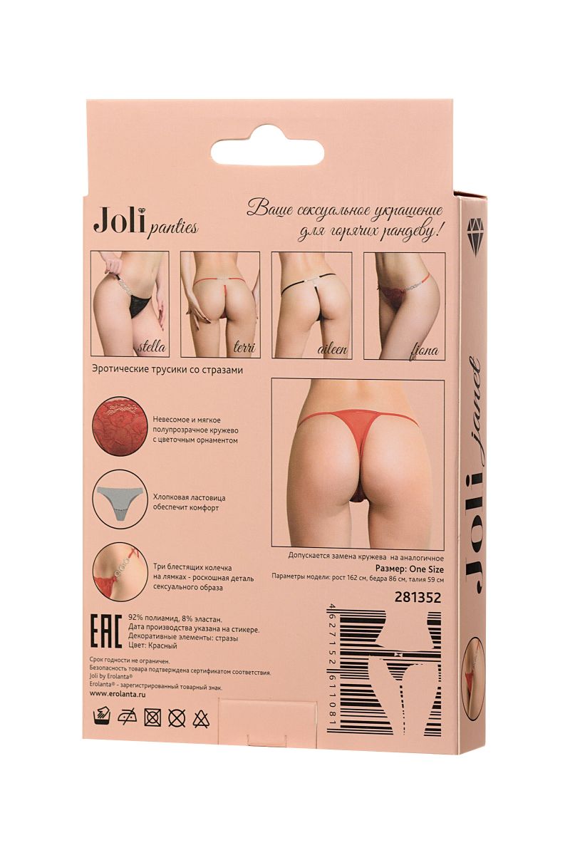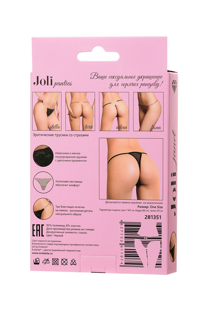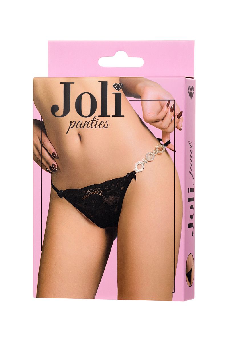 Миниатюрные трусики выполнены из кружева с цветочным орнаментом. Нежные и невесомые, с хлопковой ластовицей и мягкими лямками обеспечат комфорт своей хозяйке. Соблазнительная деталь в виде трех колец из страз на лямках добавляет роскоши в эротический образ.