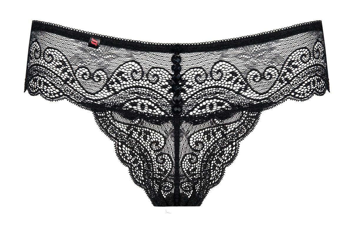 Кружевные трусики стринги, спереди декорированы маленькими пуговичками.