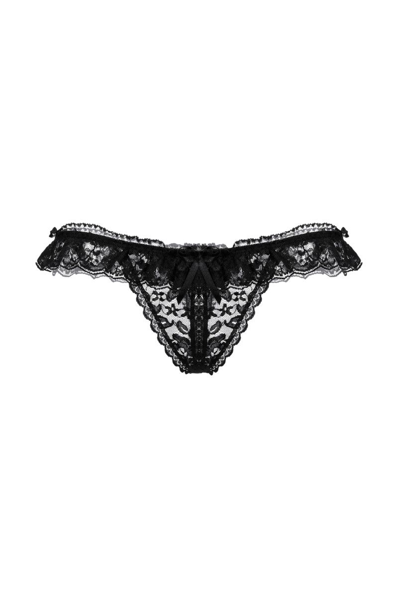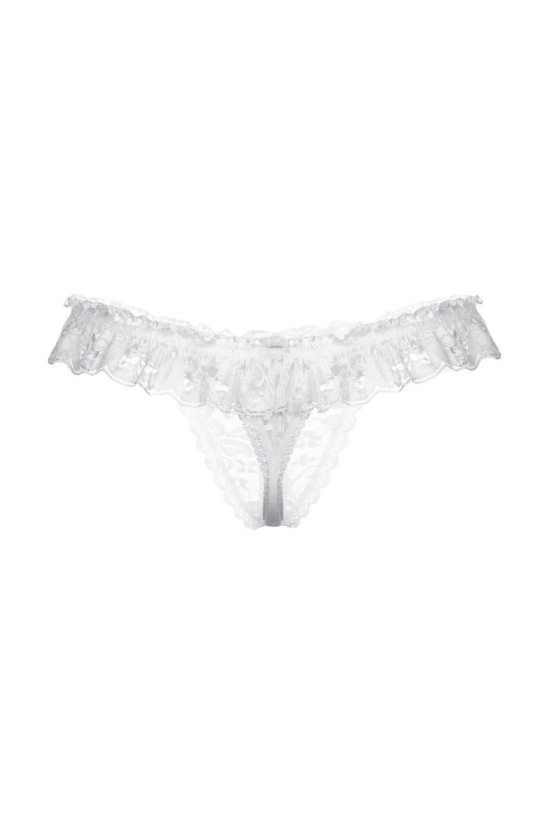 Эти трусики-стринг выдержат не одну сексуальную атаку вашего мужчины. А всё потому, что в них предусмотрен прямой доступ к вашим прелестям! Увидев вас в кружевном белье с оборками и мгновенно вспыхнув желанием, любимый сможет приступить к самым что ни на есть активным действиям по вашему удовлетворению.