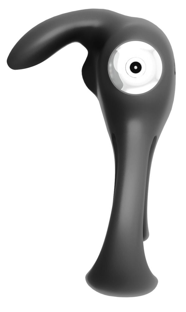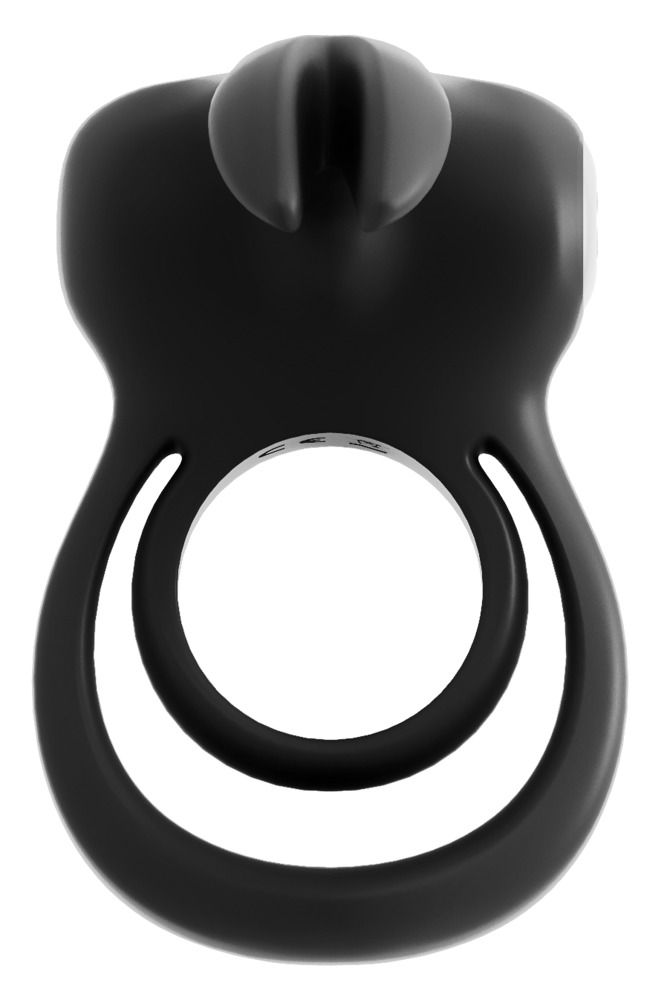 Черное эрекционное кольцо VeDO Thunder Bunny. С ушками для клиторальной стимуляции. С подхватом для мошонки. Перезаряжаемое. Диаметр подхвата - 5 см.