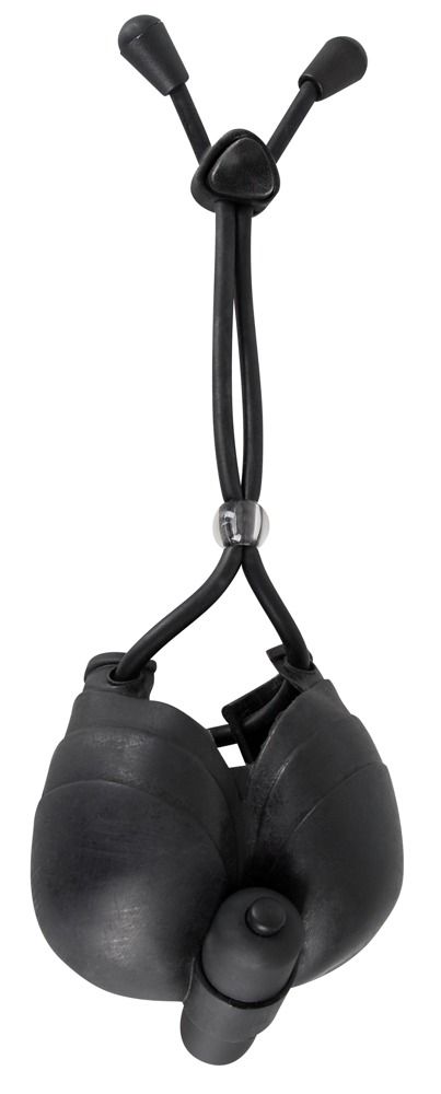 Чёрное эрекционное лассо с виброподхватом мошонки Bad Kitty. Гарантирует мощную эрекцию от плотного обхвата и чувственной дразнящей вибрации. Общая длина шнура - 38 см.