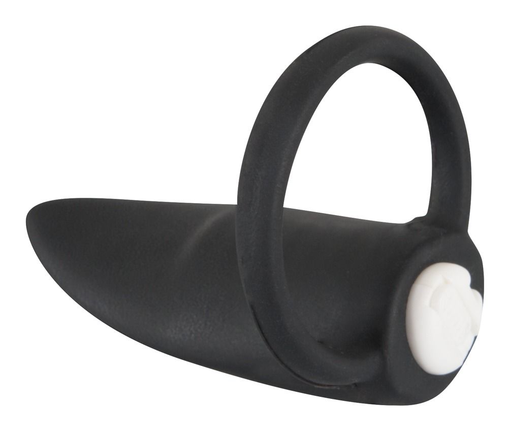 Чёрный вибратор на пальчик или пенис BLACK VELVETS. Приятный на ощупь и мощно вибрирующий. Батарейки в комплекте. Диаметр кольца - 2,5 см. Длина пальчика - 6 см.