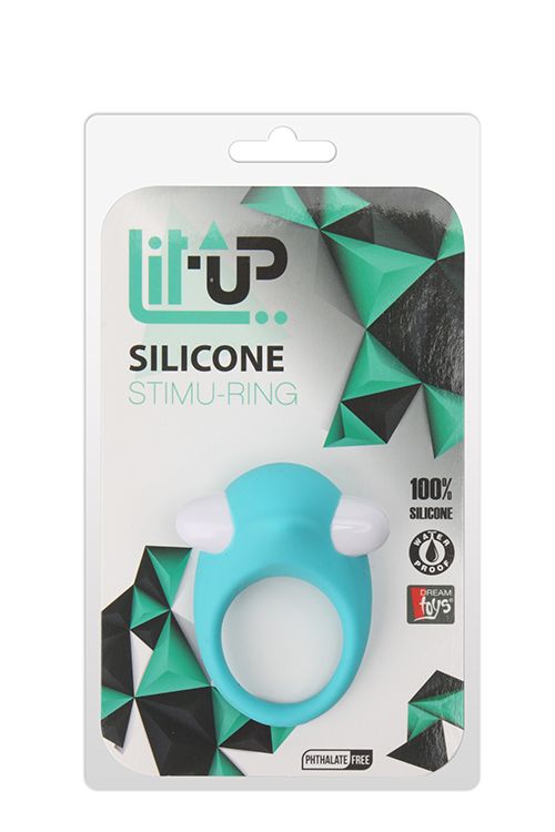 Голубое эрекционное кольцо LIT-UP SILICONE STIMU RING 6. 1 режим вибрации. Водонепроницаемое. Батарейки в комплекте.