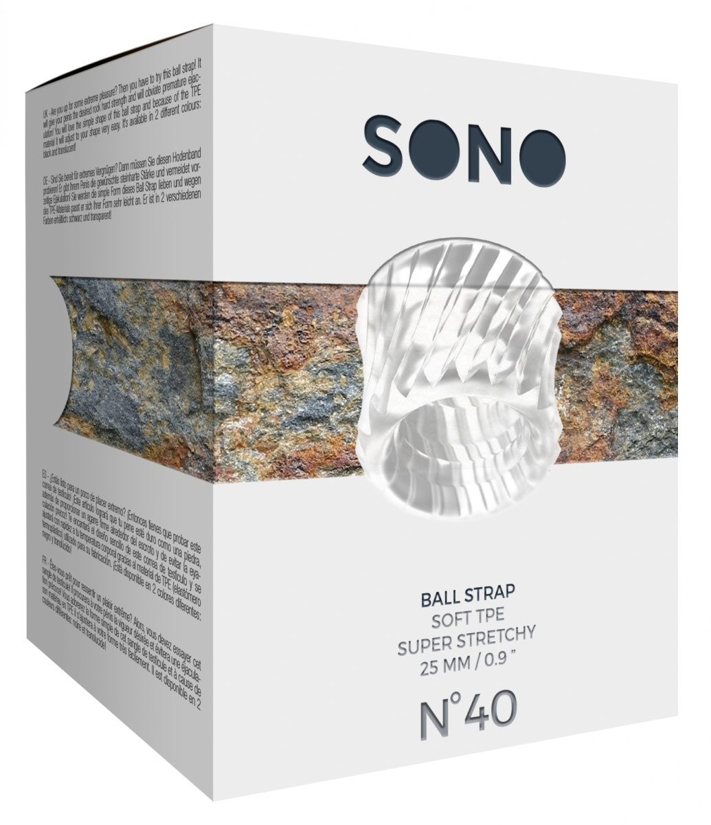 No40 - Ball Strap – необычное широкое эрекционное кольцо для мошонки, изготовленное из эластичного, легко принимающего температуру тела материала. Кольцо обеспечивает плотную утяжку яичек для поддержания эрекции и замедляя процесс эякуляции.