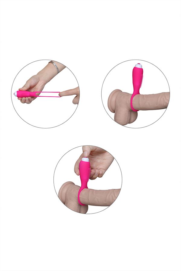 Розовое эрекционное виброкольцо S-HANDE Duets. 1 режим вибрации. Влагостойкое.