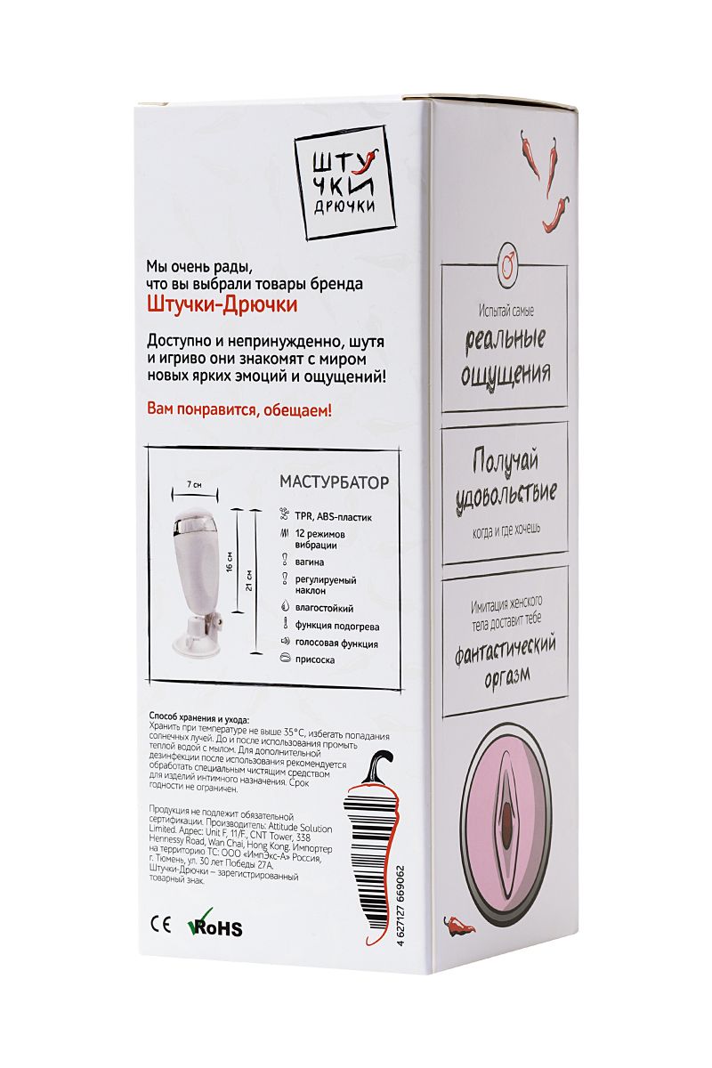 Нереалистичный на вид мастурбатор Штучки-Дрючки изготовлен из очень нежного, реалистичного материала, имитирующего женское тело. Голосовое сопровождение добавят реальности ощущениям и доставят фантастический оргазм. Пластиковая колба позволит удобно хранить и транспортировать игрушку. Присоска сделает использование легким и практичным, освобождая руки для экспериментов, а регулируемый наклон колбы сделает использование еще комфортнее. Рабочая длина - 16 см.