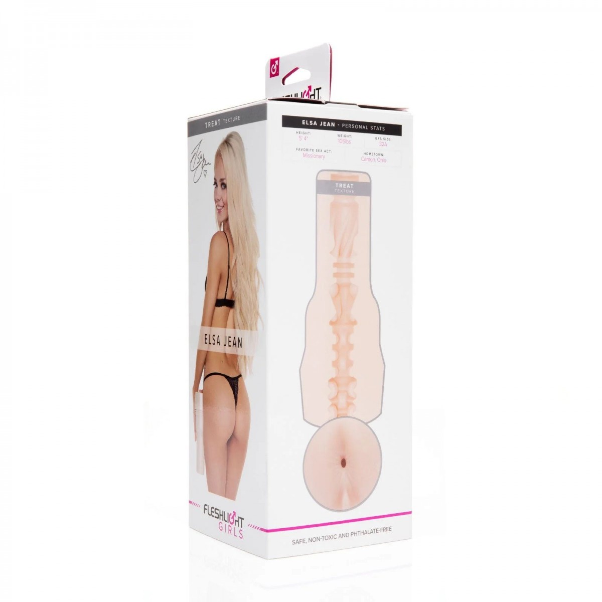 Ручной мастурбатор Elsa Jean Treat от Fleshlight выполнен в классическом виде фонарика. Серия секс-игрушек для мужчин от этого бренда передает реалистичные формы интимных органов звезд из сферы эротики. Данный мастурбатор – это точная копия ануса звезды Эльзы Джин. Он изготовлен из материала Super Skin, который максимально приближен к текстуре настоящей человеческой кожи. Внутренняя поверхность мастурбатора имеет разный диаметр и рисунок для достижения высшей точки удовольствия. Рукав мастурбатора легко вынимается из корпуса для тщательной очистки изделия.