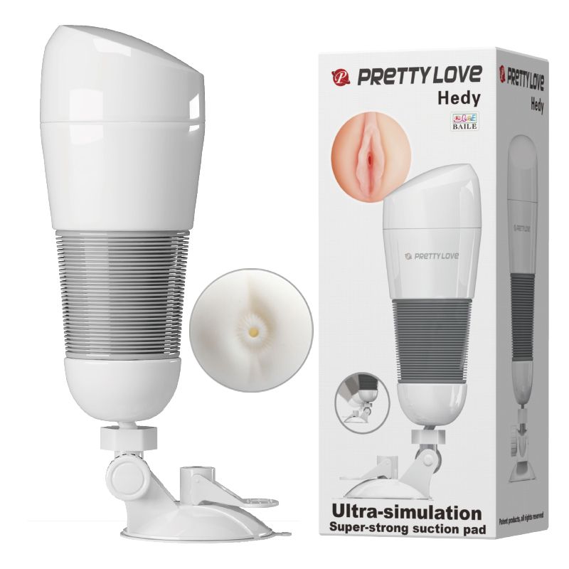 Мега-мастурбатор анус Hedy без вибрации. В основании имеется присоска для фиксации игрушки на стене или мебели. Длина мастурбатора без присоски - 20,5 см.