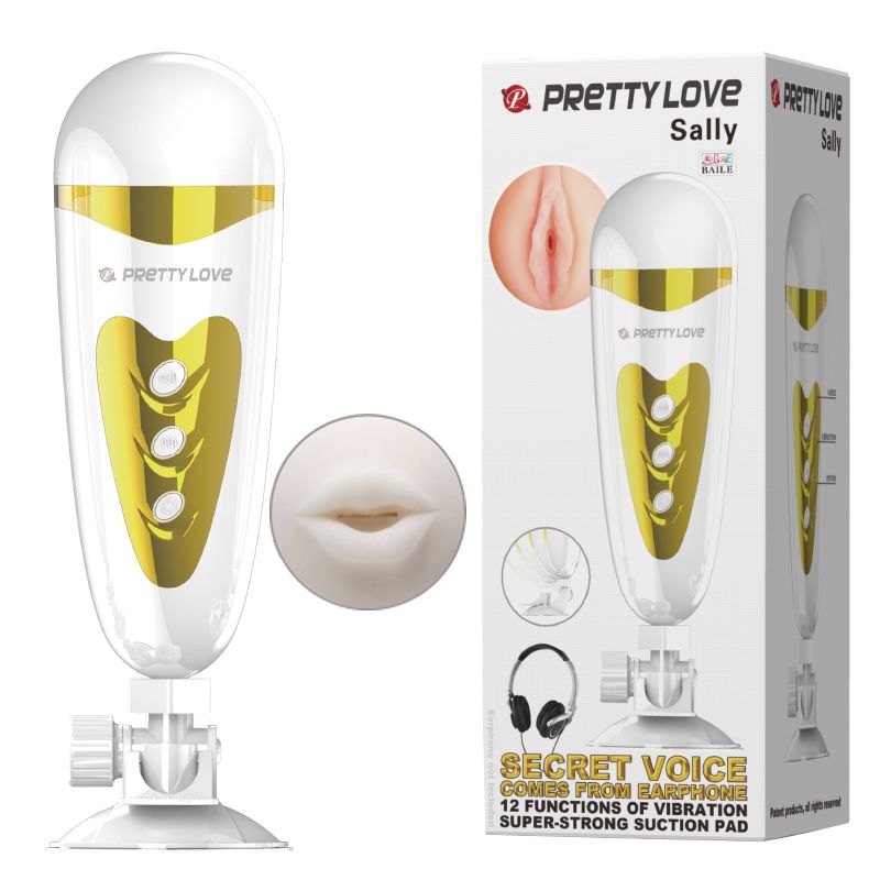 Мега-мастурбатор ротик Sally с вибрацией и голосом. 12 функций вибрации. Возможность подключения наушников. Перезаряжаемый. Длина без присоски - 23 см.