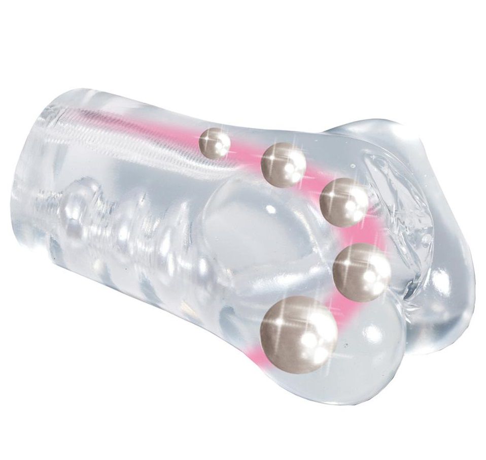 Прозрачный мастурбатор-вагина со стимулирующими бусинами PARISIAN PASSION WITH 5 PEARLS. Приятный на ощупь.