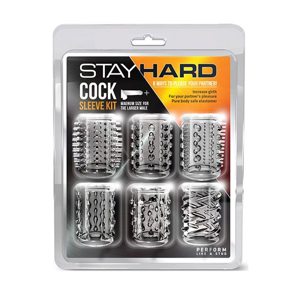 Набор из 6 прозрачных насадок на пенис с различным рельефом.