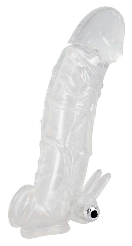 Насадка на пенис с клиторальным вибростимулятором Crystal Skin. Клиторальный стимулятор выполнен в виде кроличьих ушек. Головка закрытая. Сама насадка отлично растягивается и приятная на ощупь. Батарейки в комплекте. Рабочая длина - 16 см.
