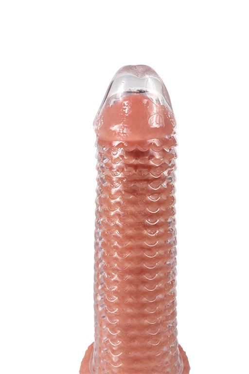 Насадка Kanikule – насадка закрытого типа для увеличения длины и обхвата полового члена, а так же осуществления дополнительного воздействия. Модель обладает ребристой текстурой для более интенсивной стимуляции партнерши. Насадка очень эластичная и хорошо растягивается. Насадка одевается на всю длину полового члена. Для идеальной посадки лишний материал можно отрезать. Длина полости - 14 см.