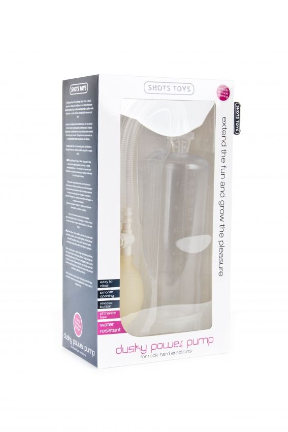 Dusky Power Pump от Shots Toys даст тебе сексуальное удовольствие, размер, а также самоуверенность, о которой ты всегда мечтал! Каждый раз, когда ты сжимаешь грушу, твой член становится больше и толще. Отверстие вакуумной помпы изготовлено из эластичного и гибкого силикона, что обеспечивает очень приятные ощущения при соприкосновении с твоим пульсирующим и твердым, как скала, членом! Прозрачная трубка позволяет наблюдать за увеличением пениса. Щелкнув выключателем, ты можешь мгновенно уменьшить давление воздуха. Когда ты закончишь, просто отсоедини высасывающий шланг от цилиндра и очисти помпу, используя средство для чистки игрушек и теплую воду.