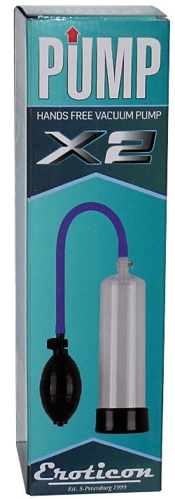 Помпа Eroticon® серии X — изделие премиум-сегмента. Она воплотила в себе основные технические новинки adult-индустрии: усиленные соединения (штуцеры), гибкие насосно-компрессионные трубки из медицинского силикона, усовершенствованные вакуумные насосы. Помпа X2 снабжена вакуумным клапаном, который позволяет отсоединить насосно-компрессионную трубку без потери давления на кольцо, эрекционное кольцо. В комплекте: цилиндр с мерной шкалой, силиконовая трубка, насос-груша, уплотнительное кольцо, эрекционное кольцо. Внутренняя длина цилиндра - 18 см., минимальный диаметр - 5,7 см. Диаметр эрекционного кольца - 1,8 см.