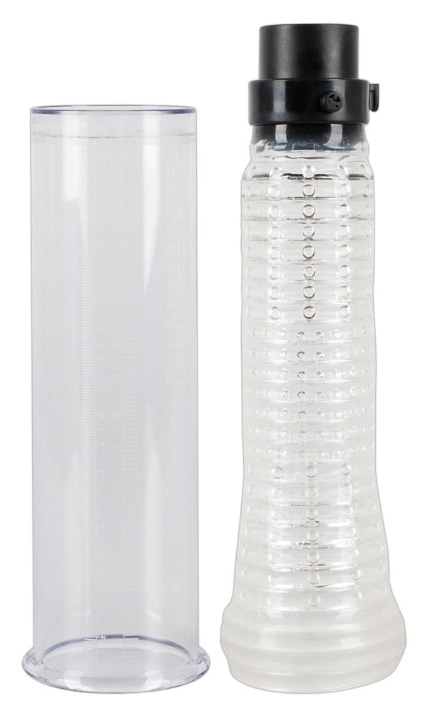 Вакуумная помпа и мастурбатор - два в одном. В зависимости от того, как трубка на цилиндре прикреплена к насосу, воздух может быть выкачен из помпы (для создания эффективного вакуума для тренировки пениса) или протекать внутри, создавая эффект всасывания (мастурбатор). С многоскоростными вибрациями. Рабочая длина - 16,5 см.