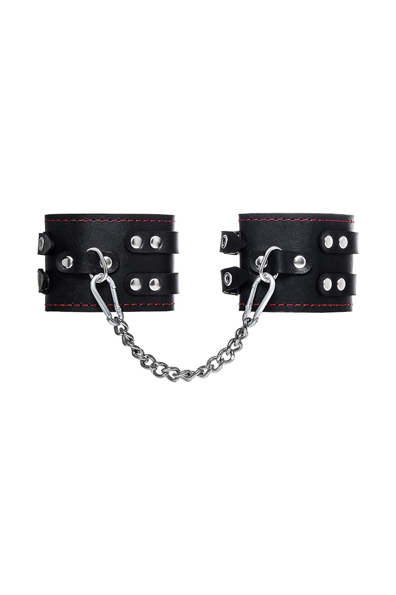 Эти кожаные оковы с двумя ремнями и чёрной подкладкой могут стать стильным аксессуаром, а могут послужить вашим целям по своему прямому назначению. Частичное обездвиживание и невозможность двигать руками или ногами дают вам полную власть над партнером – взрослые игры для взрослых. Наличие двух колец и карабинов, соединенных между собой металлической цепочкой, позволяет использовать изделие как раздельно – аксессуар-манжеты, так и как оковы для фиксации. К широким металлическим кольцам также можно присоединить и другие аксессуары при помощи карабинов. Благодаря универсальному размеру оковы могут использоваться и мужчинами, и женщинами. Размер легко регулируется с помощью металлических пряжек, органично вписывающихся в общий стиль. Длина манжет - 25 см, ширина - 7 см. Длина сцепки - 20 см.